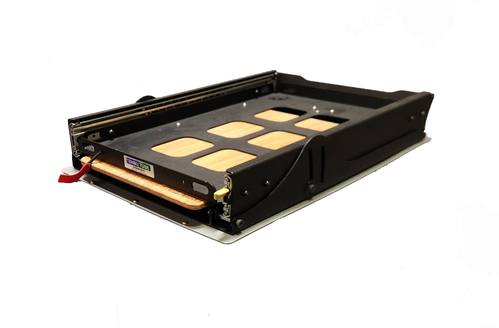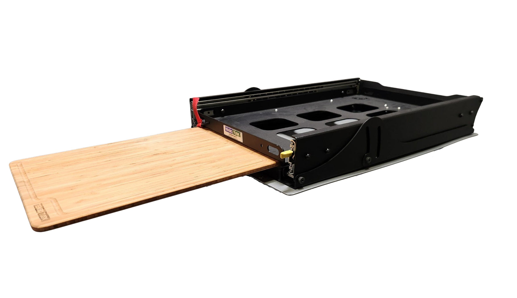 All TemboTusk slides after August 2025 come pre-drilled for the Cutting Board Attachment.  A simple bolt in attachment. The cutting board attachment will not raise the fridge pan.